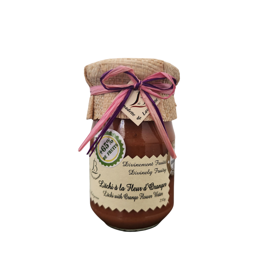 La confiture de litchi à la fleur d’oranger est une délicieuse association de fruits exotiques de litchi et de l’essence parfumée de l’eau de fleur d’oranger. Cette confiture unique offre un mélange harmonieux de saveurs qui ravira vos papilles.
