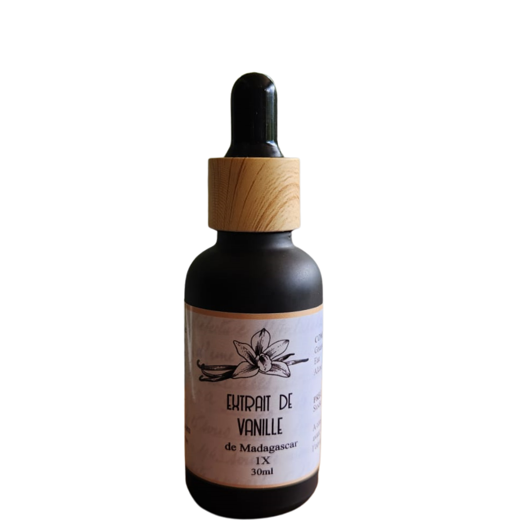 Cinq Frères vous propose de l’extrait de vanille, idéeale pour relever vos plats et desserts. Obtenue par le trempage de nos gousses de vanille de nos plantations dans une solution d’alcool neutre. L’alcool ayant pour effet d’extraire la saveur et l’arôme des gousses de vanille.