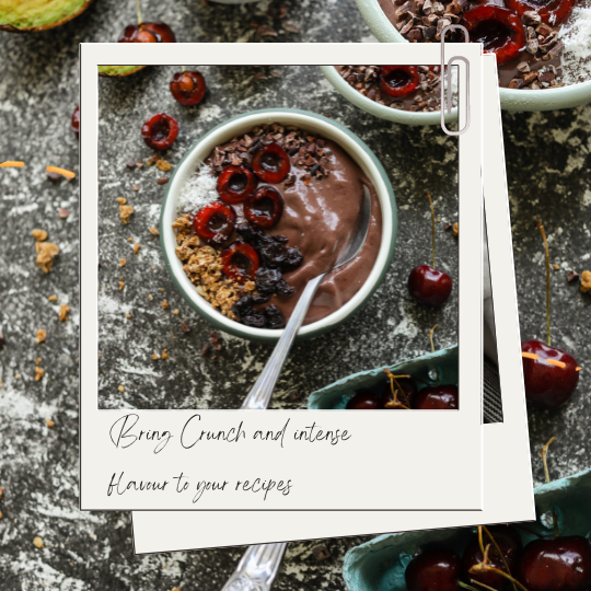 Il y a de multiples manières de consommer les fèves de cacao : Entières, crues, torréfiées, broyées, caramélisées, sucrées ou salées, en topping ou infusées, laissez libre recours à votre imagination.