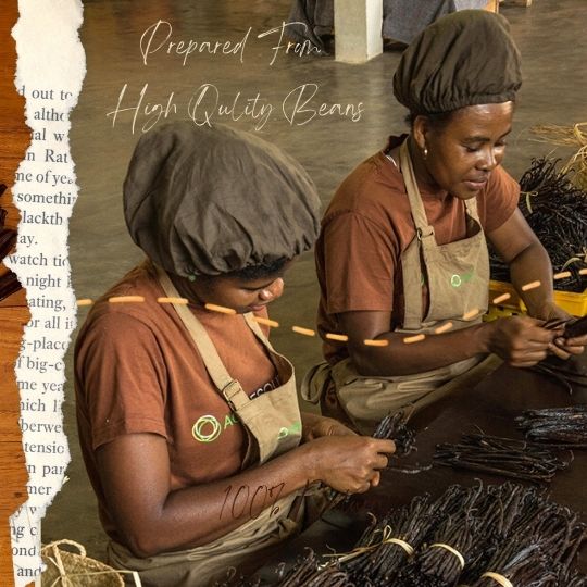 En effet, les autres produits que l’on retrouve sous le terme « poudre de vanille » sont généralement issus de la valorisation des résidus de gousses utilisées lors de la fabrication des extraits de vanille. C’est ce que l’on appelle les gousses épuisées. Ce sont des gousses qui ont été vidées de leur pouvoir aromatiques, qui ont séchées puis broyées. La poudre fabriquée à partir de ces résidus d’extraction ne possède pas de pouvoir aromatique et permet simplement de donner l’illusion dans le produit finit que de la vanille naturelle a été utilisée (petits grains présents dans une glace par exemple).