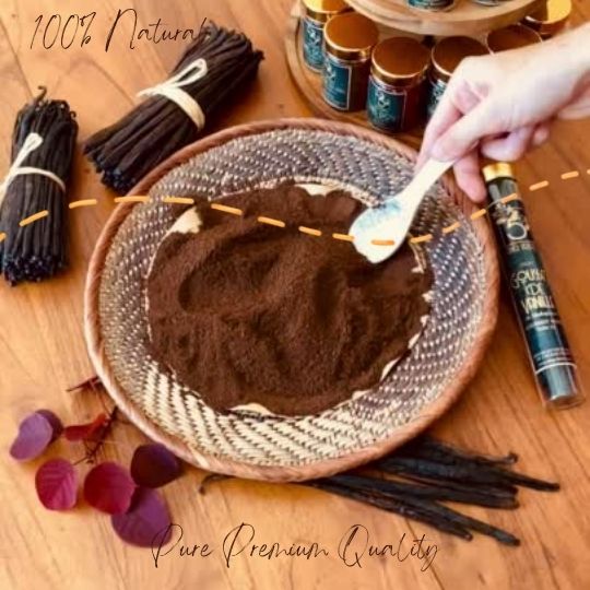 Ces deux qualités de poudre de vanille, sont les seules que vous devriez choisir car étant les seules issues de gousses non épuisées et simplement broyées, avec donc, un fort pouvoir aromatique.